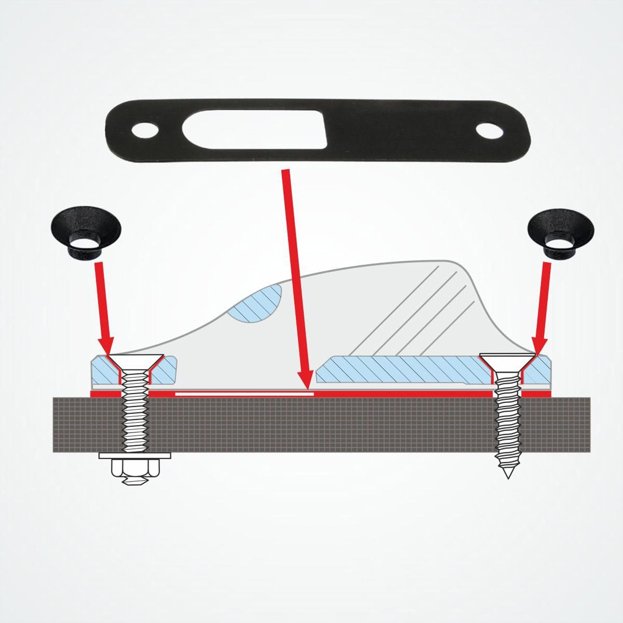 Isolatoren aus Nylon für Clamcleat Klemmen aus Aluminium. Sie bilden eine isolierende Schicht zwischen den unterschiedlichen Materialen, um Korrosion zu verhindern.